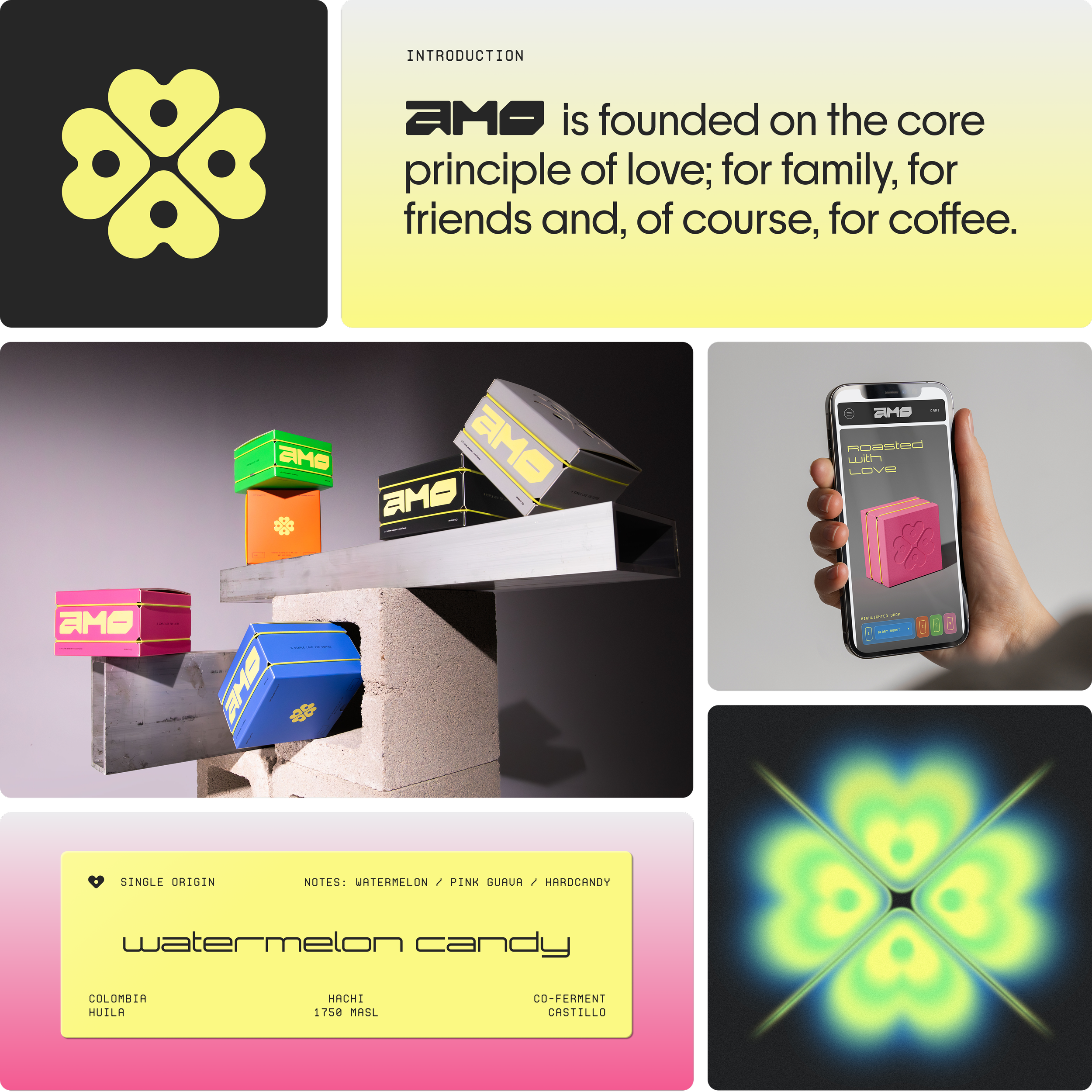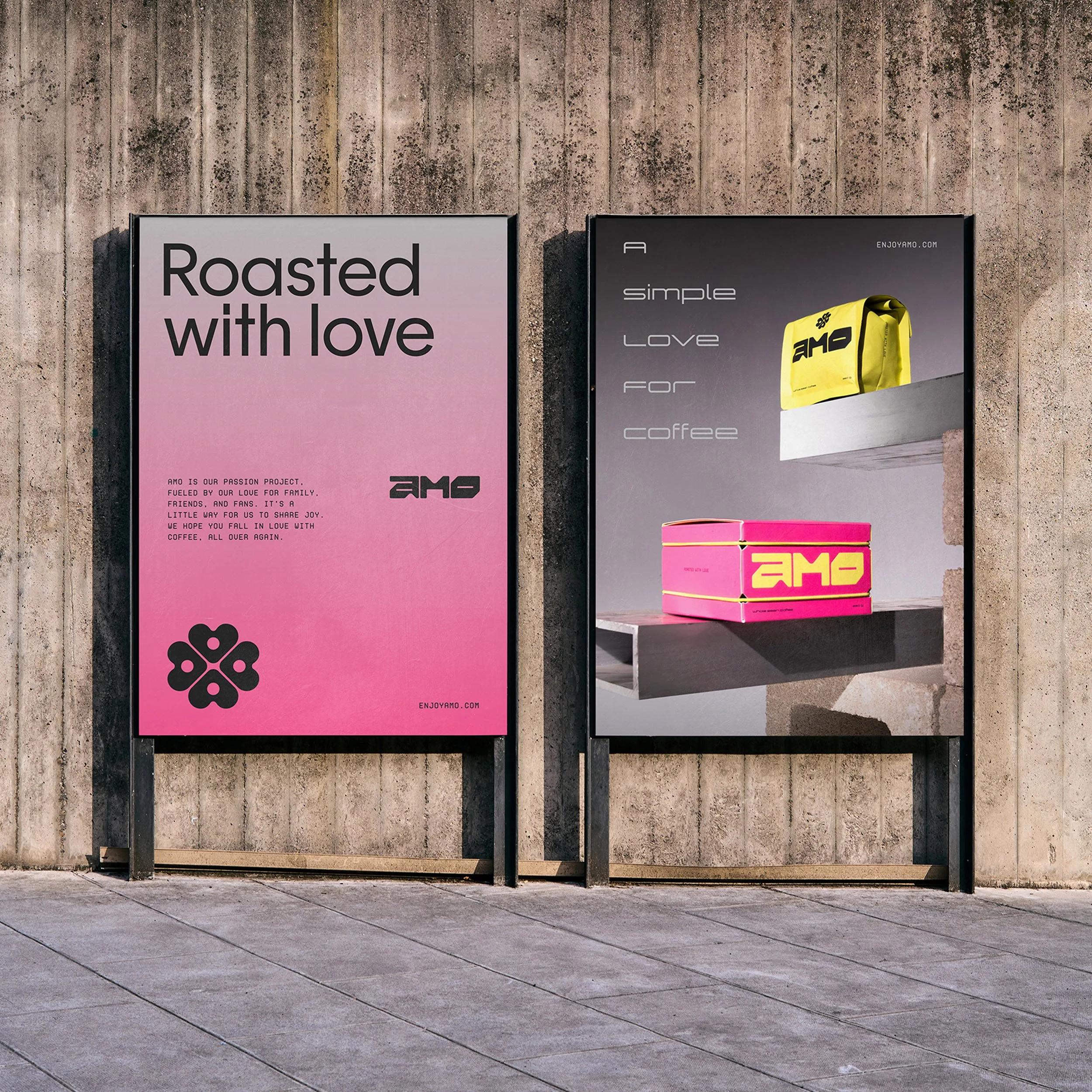 The brand name Amo comes from the concept of love, inspired by Colby and Rebecca’s love for each other, their family, their fans, and great coffee. This idea became the foundation of the entire brand system. We wanted the design to express that warmth and affection while retaining the boldness and attitude associated with wrestling culture.