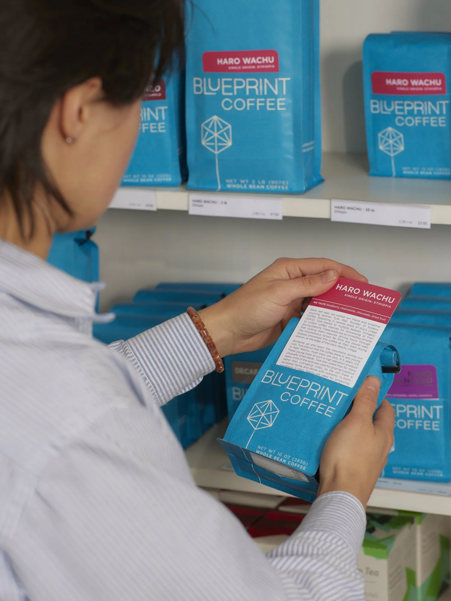 At Blueprint Coffee, we’re guided by our values of transparency and intentionality. In our redesigned packaging, we challenged ourselves to incorporate more information about our coffees, while also developing a cleaner, more inviting aesthetic that’s still true to our brand. Drenched in our signature shade of vibrant blue and anchored by clean, simple graphics, our new bags stand out on the shelf with bold elegance.