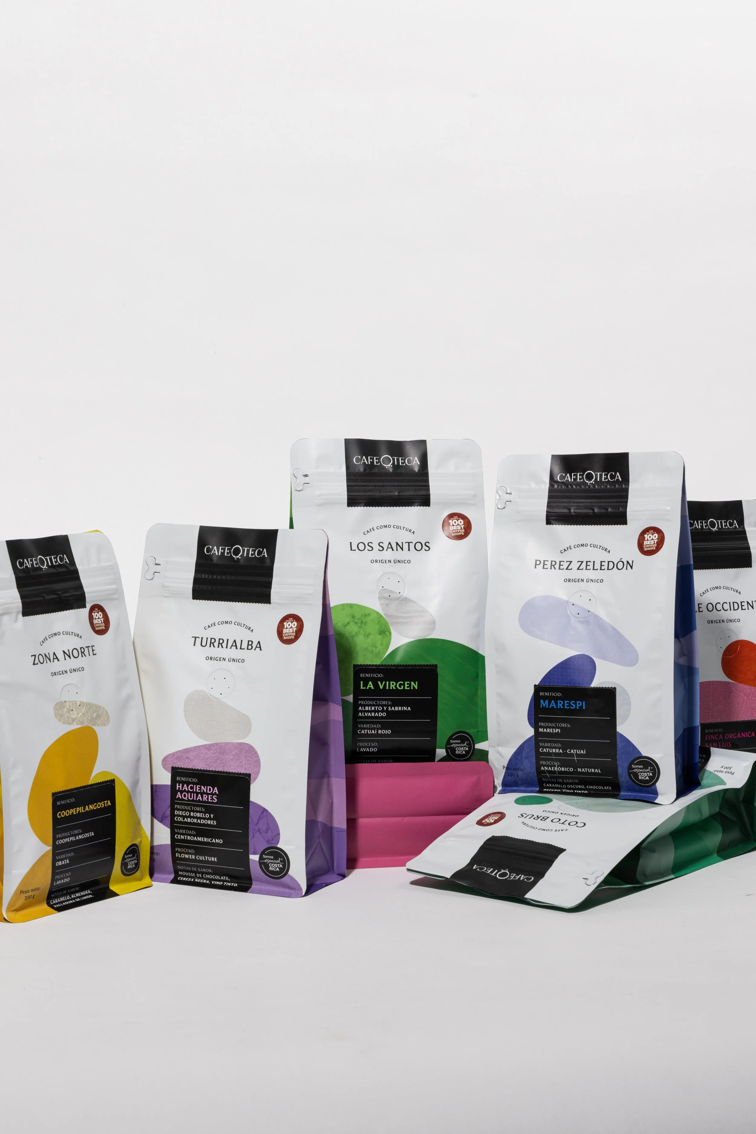 Color plays a central role in the design. Each color corresponds to a specific coffee-growing region, following the official regional color system established by ICAFE. This allows the packaging to visually communicate origin while celebrating the geographic diversity of Costa Rica’s coffee landscapes.
