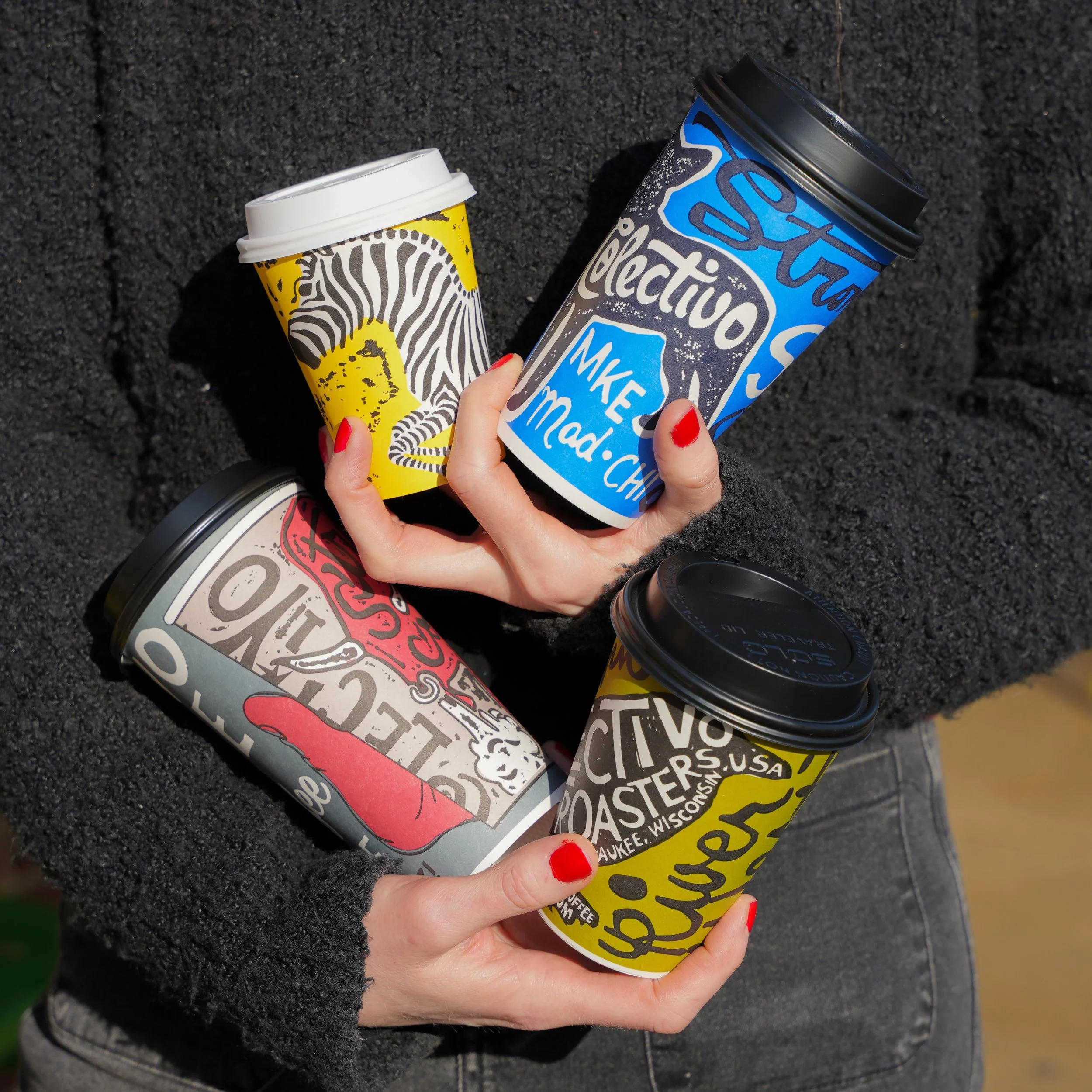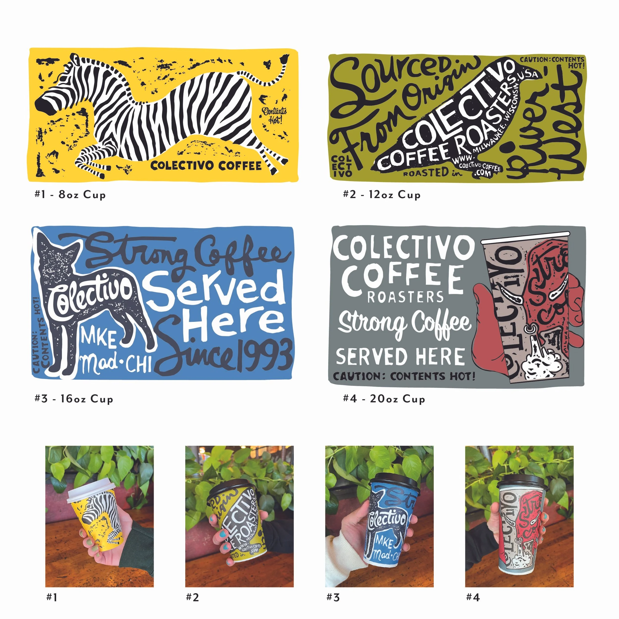The 2025 Colectivo hot cup series turns a functional object into a bold expression of the brand. Across all four sizes, distinct illustrated compositions and textured hand lettering create an energetic, cohesive system. A longstanding canvas for Colectivo’s signature coffee iconography, the cups have become a recognizable brand touchpoint both on social media and out in the world.