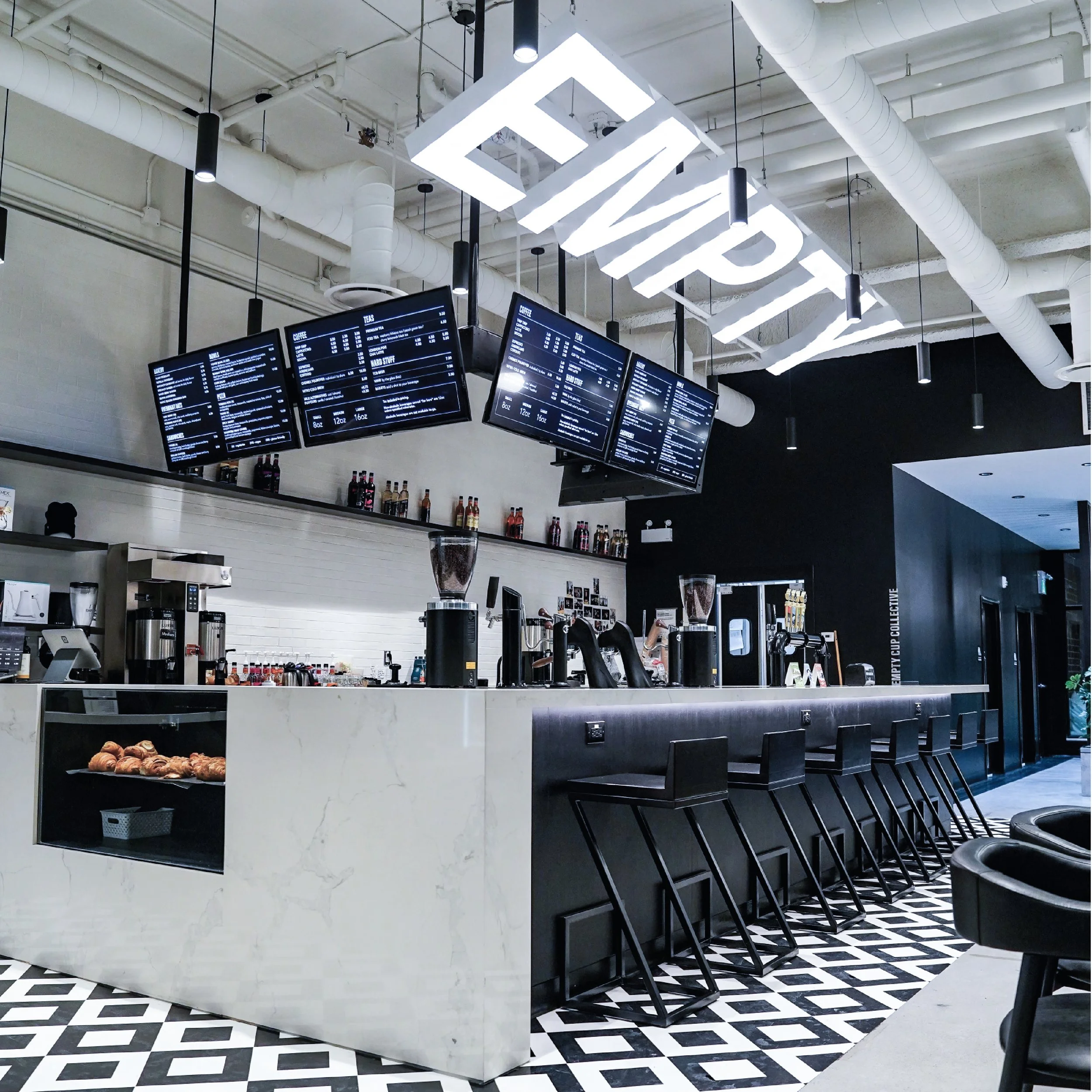 Empty Cup was created as a blank canvas for people to work, create, and come together. The large counter spaces, and ample seating creates space for people to gather, socialize, work and collaborate in a positive, beautiful environment. The ultimate goal was to create a space that is bright, open, and welcoming for all people of all interests, backgrounds, and lifestyles to enjoy in a way that best serves them.