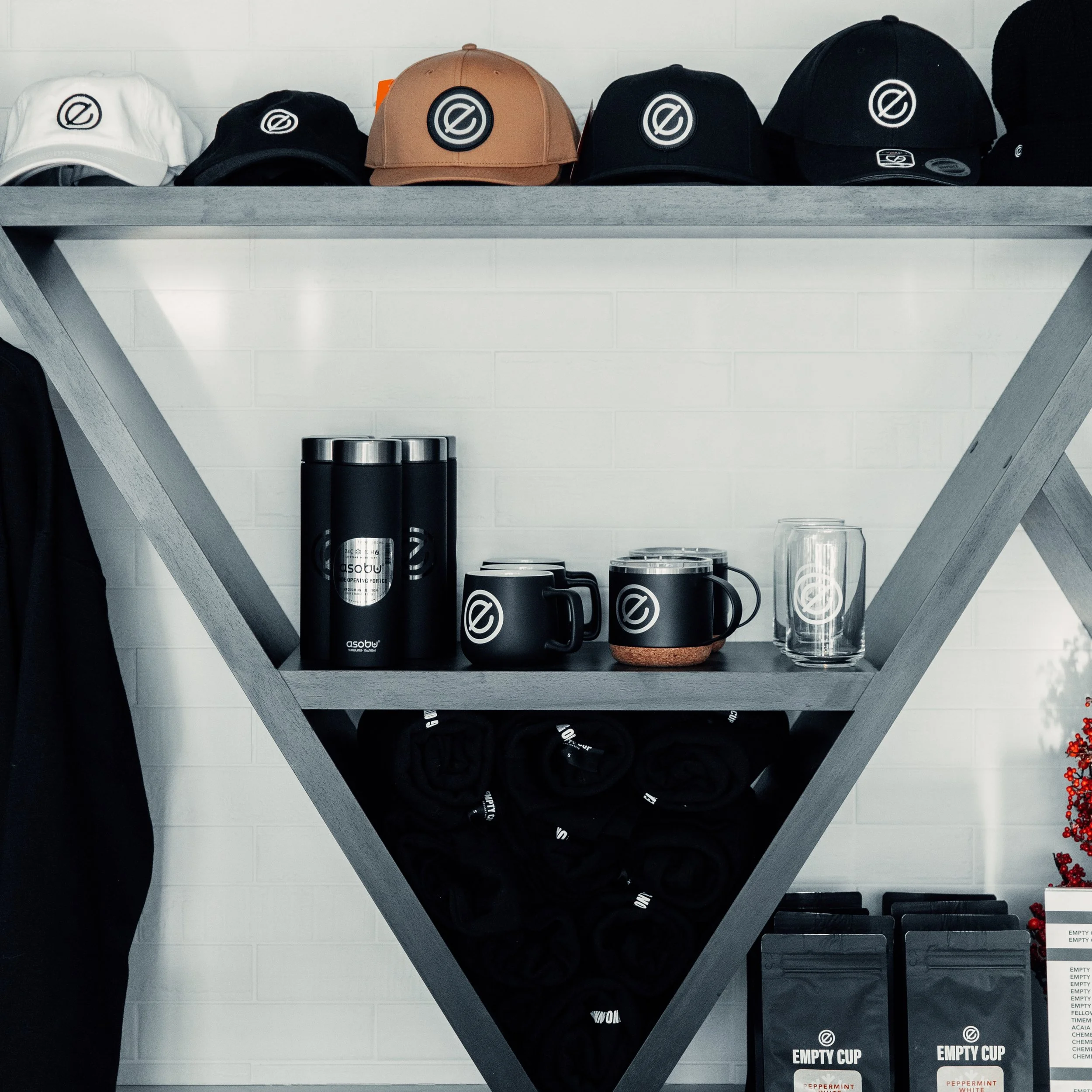 The Empty Cup Sage Creek location was opened in late September 2021, in a newly developed area of Winnipeg. Creating our space in a new build location offered a complete blank canvas for our design, which is something we strive to provide our customers at all of our locations, a blank canvas for their environment. The design of our Sage Creek location, focuses on a black and white, minimalist design that is welcoming, and aesthetically pleasing to all who share in our space.