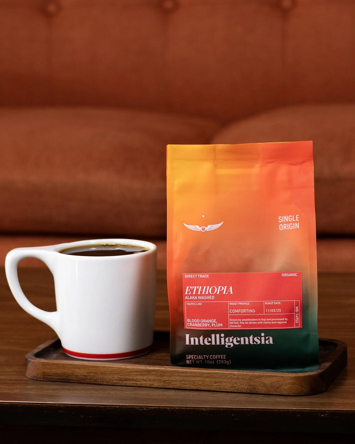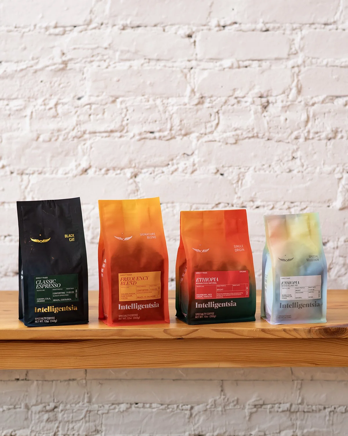Our staple Signature Blends pay tribute to the classic Intelligentsia red, reimagined with a vivid gradient and pops of orange that reflect the vibrant energy of our coffees.