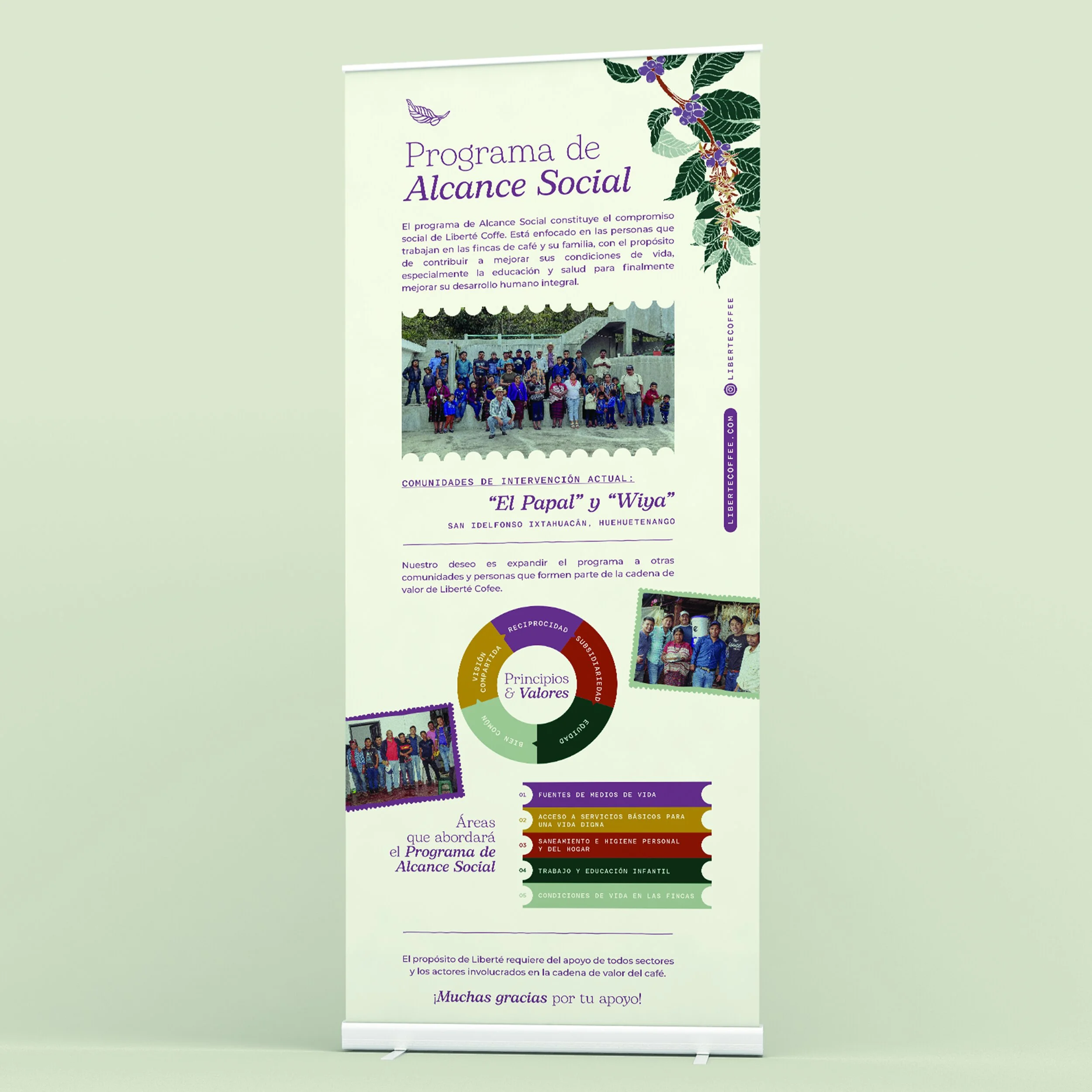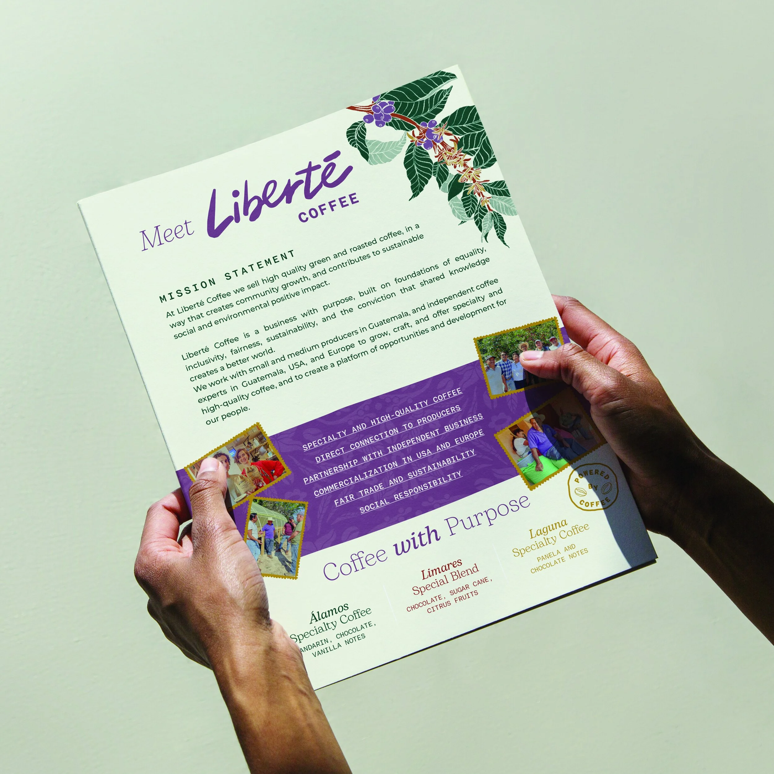 To develop and define Liberté Coffee’s Visual Identity, we considered that through all the communication pieces the brand could represent the agro-coffee culture and the Guatemalan culture; therefore, we re-interpreted and adopted various elements from the coffee farms as well as the communities, making them fundamental part of the brand’s identity. Elements like the morphology of a branch of a coffee plant, the hands of people collecting coffee beans, the Quetzal, Guatemala’s national bird that cannot live in captivity, and the ‘Tuc-Tucs’, the most common and practical mode of transportation in the rural areas and coffee communities. These elements together with a color palette mirroring the diversity that Guatemalans offer; colors that we see in nature, on the streets, in the local markets, and in the traditional clothing of our people. Liberté Coffee’s branding was designed so that the consumer enjoys an excellent cup of coffee, awakens the humanity in coffee, supports our Social Outreach Program, and evokes the feeling of being part of a community. Thus, generating affinity with their values and interests, and awakening the curiosity to learn more about Liberté Coffee, about specialty coffee, and about Guatemala.