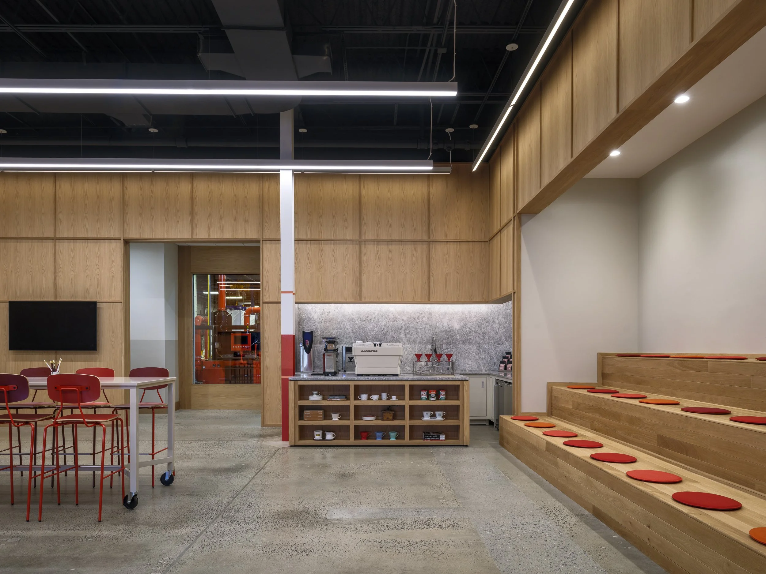 Designed for connection, M-LAB utilizes organic materials and a neutral palette. Signature Melitta red accents provide a branded pulse, with the space’s true vibrancy fueled by the human energy and interactions it was built to inspire.