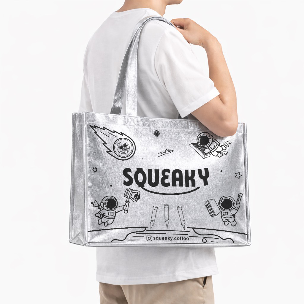 By combining reusable packaging, storytelling graphics, and practical everyday functionality, the Squeaky Mission Bag aims to turn a simple shopping bag into a long-lasting design object that continues to communicate the brand’s spirit of exploration.