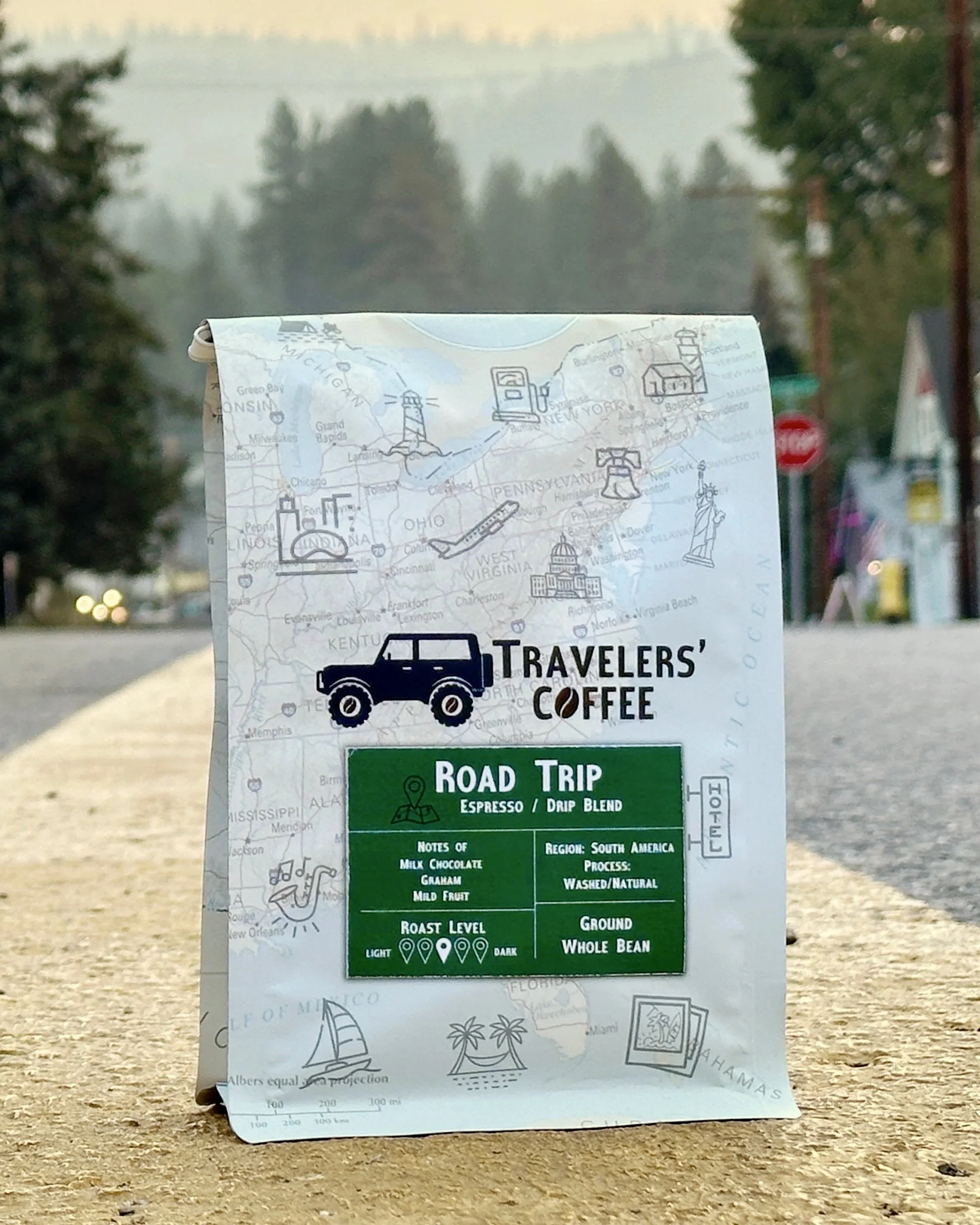 We are family owned and have spent years traveling across the country (we’ve been to 49 out of the 50 states!) and in each state we searched for new coffee shops to visit. From our love of coffee and travel we started our own roasting company and named it Travelers’ Coffee. We hope our customers can taste the adventure with us!